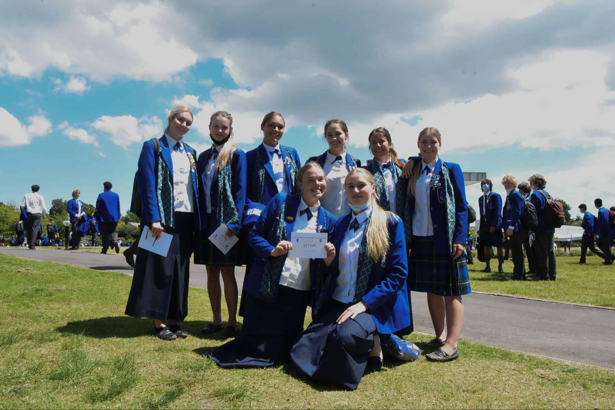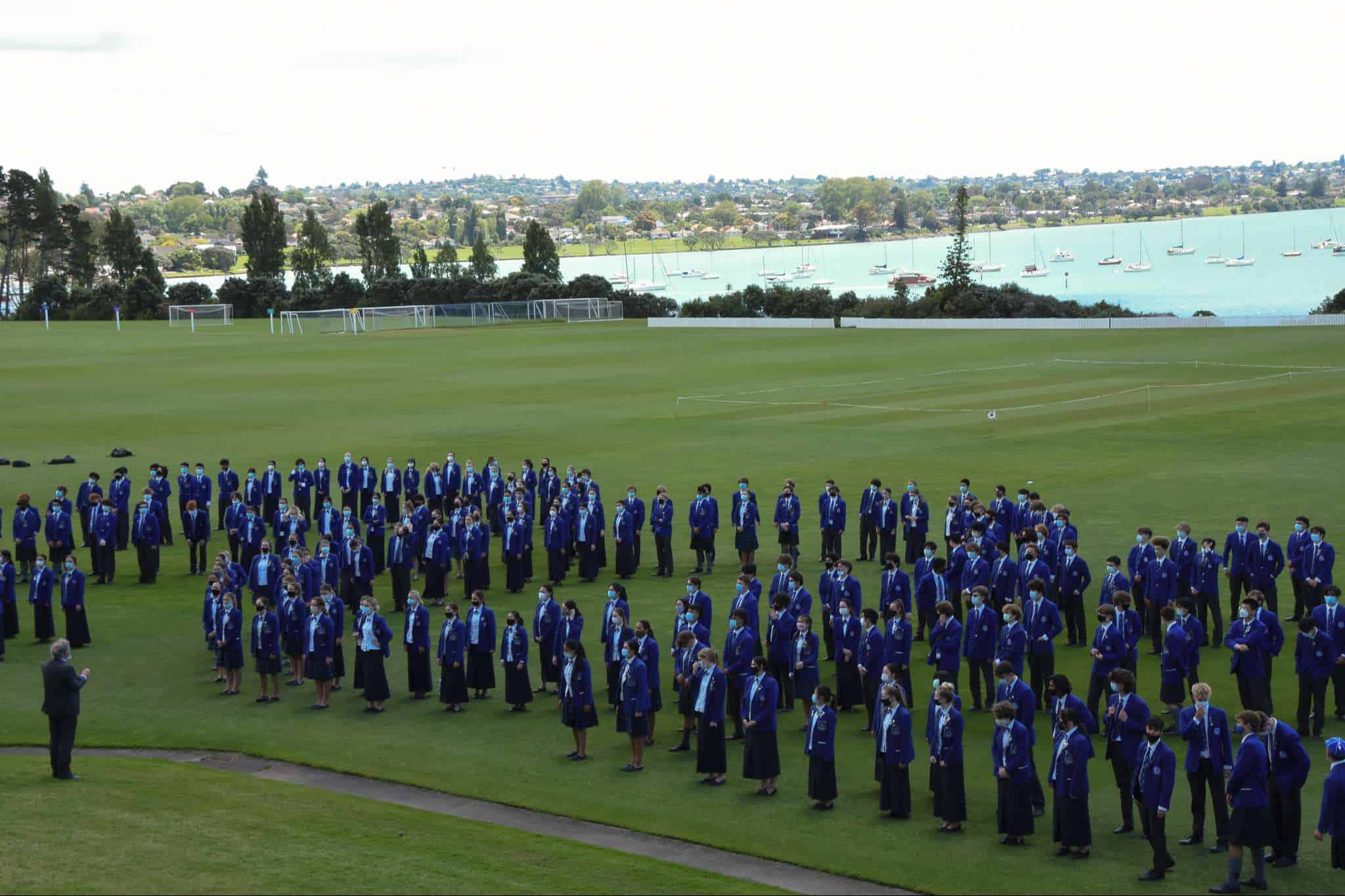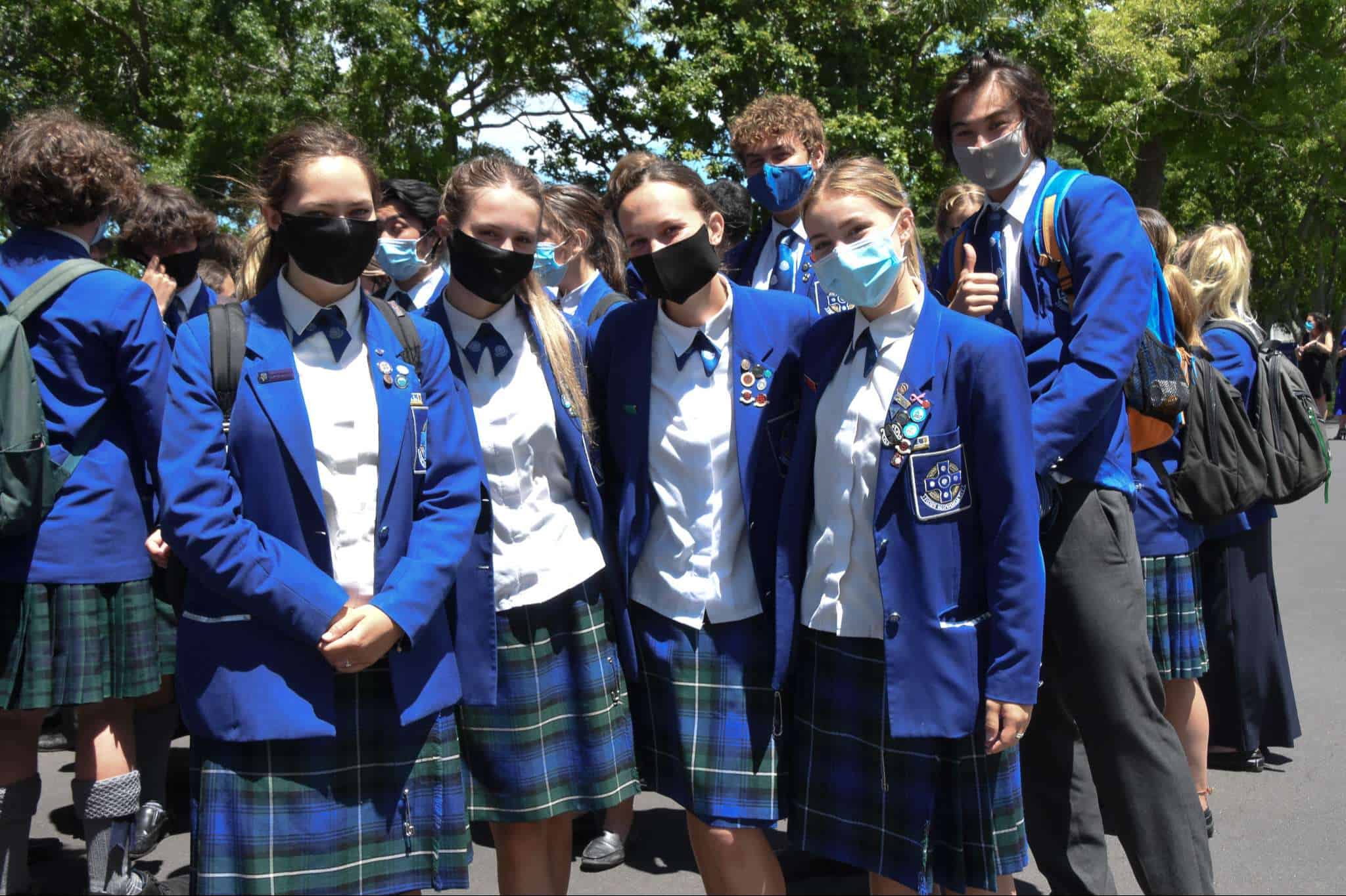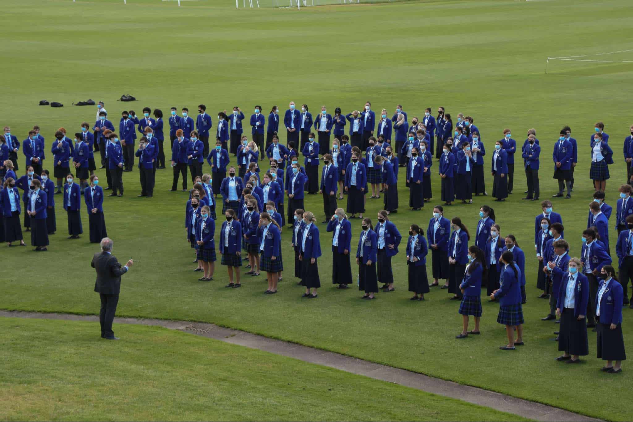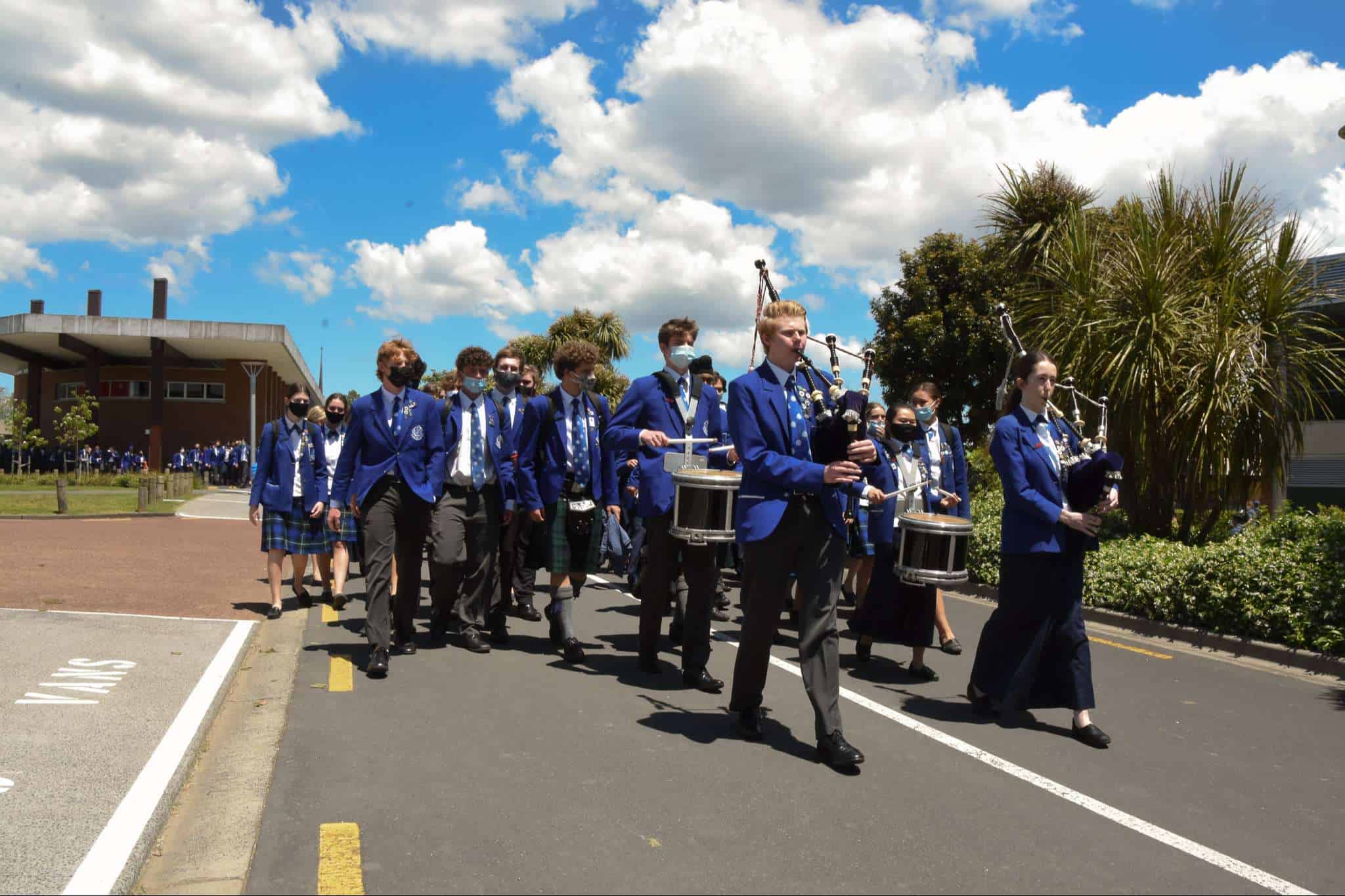 November 11 marked the official last day of school for our Year 13 students. While they spent the morning in classrooms with their teachers and peers preparing for their upcoming exams, our Year 13 cohort came together in the afternoon to celebrate their learning journey at Saint Kentigern, a place that has been ‘home’ to a number of them since their primary school years. The Graduation afternoon started with a Chapel service delivered by College Chaplain Reverend Smith, before students were led by fellow Year 13 pipers, Cameron Dean and Charlotte Cornwall, and drummers, Sarina Wang and Nic Lacey, to the No 1 Sports Field for the annual tradition of forming a giant ‘human 2021′ for an aerial photo, representing the graduating Class of 2021.