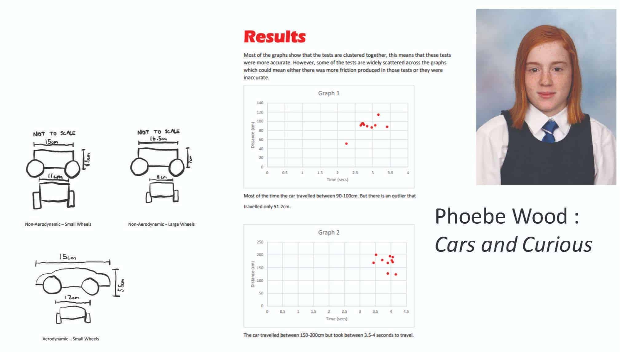 In Third place, Emily Cornaga (Is It All Hot Air? Physical World) carried out a comprehensive test on two materials and how they dry in various test conditions. Emily also received a Special Prize, as did Amie Hilliam (Bake, Time and Temperature. Food Science) who designed a fair test to compare the rising and quality of cupcakes. She compared the amount of time and the temperature of baking to produce the perfect cake. Amie also received a Special Prize.